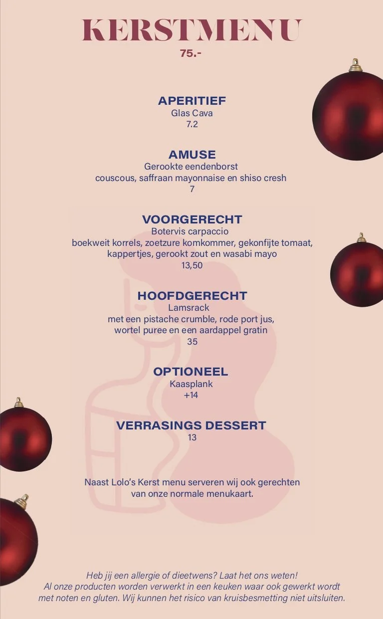 Reserveer snel jullie plekje voor een kerst diner bij Lolo Blu op Eerste of Tweede kerstdag!
